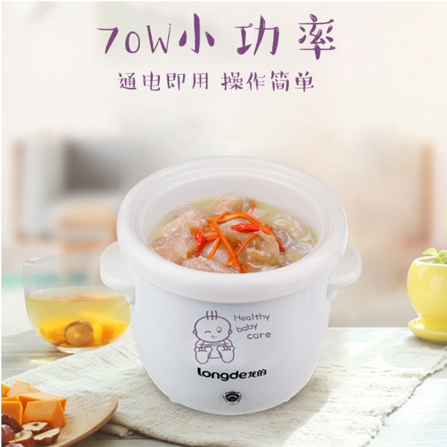 longde龍的電燉鍋,文火慢,還遠(yuǎn)廣東老火靚湯般原始的滋味,燉,營養(yǎng)不流失。除了煲湯,還可以給孩子做各種營養(yǎng)膳食,類如出糧粥,口感香滑,用心給孩子安排上營養(yǎng)早餐。70W小功率,通電即可使用,操作簡單,避免麻煩。陶瓷材質(zhì)更健康,燉煮時(shí)也不會溢出來,無需看管。