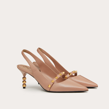 這款精致簡約的膚色高跟鞋,鞋面采用小山羊皮制成,觸感親膚順滑,上腳柔軟舒適,給你帶來的穿著體驗,鞋跟裝飾一系列經典四面金字塔鉚釘,鞋面同樣加以鉚釘裝飾,復古的黃銅色,提高辨識度,彰顯品牌魅力。