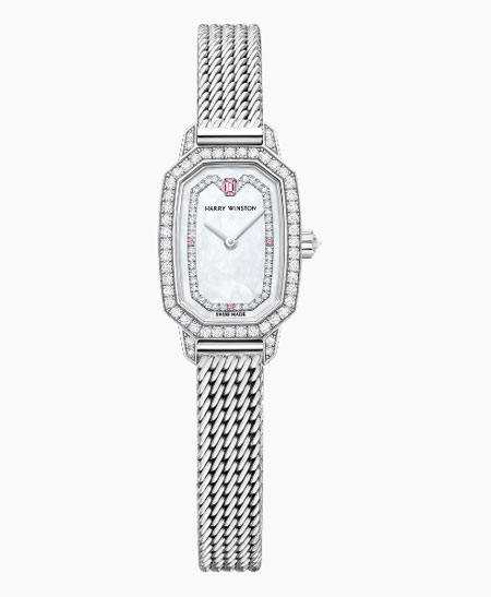 這款小型而精致的腕表,能充分烘托出女性的那份氣質(zhì)美,海瑞溫斯頓印記Emerald系列腕表呈現(xiàn)柔美粉色調(diào),飾以閃亮的鉆石和珍珠母貝,高雅動(dòng)人。值得一說(shuō)的是,對(duì)于想實(shí)用與魅力得而兼之的女士而言,可謂理想臻品。