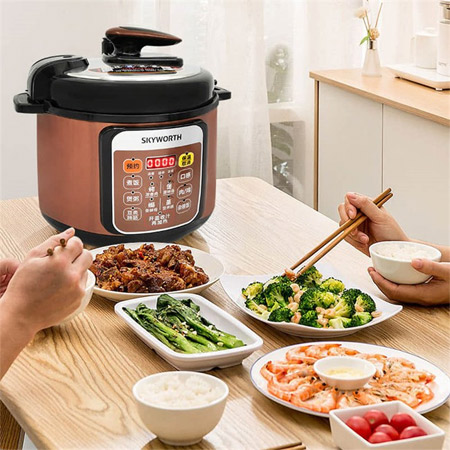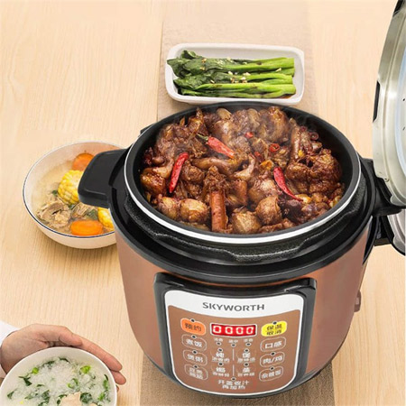 創(chuàng)維電壓力鍋,智能化按鍵操作,老人小孩都能輕松使用。全自動智能烹飪,擁有十三大功能菜單,蒸焗燉煲樣樣精,收汁入味,不用看管。聚能不粘內(nèi)膽,受熱透芯不夾生,五層復(fù)合結(jié)構(gòu),聚能鎖熱,受熱均勻,煮出滿足大眾口感。