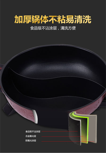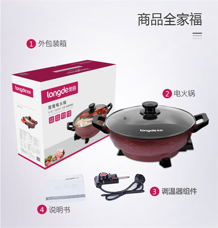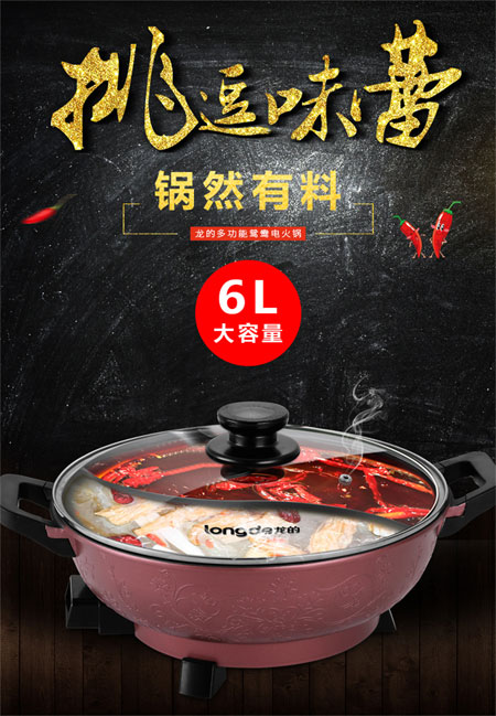 longde龍的鴛鴦電火鍋,滿足挑剔人群的需求,一邊是清淡,一邊的香辣,時(shí)刻挑戰(zhàn)你的味蕾。1500W大功率,環(huán)形發(fā)熱管,加熱面積大,受熱均勻,火力剛好,享受美味不必久等,干飯人,時(shí)刻準(zhǔn)備著。轉(zhuǎn)動(dòng)溫控調(diào)節(jié),準(zhǔn)確控溫,多個(gè)火力選擇,適用多種需求。