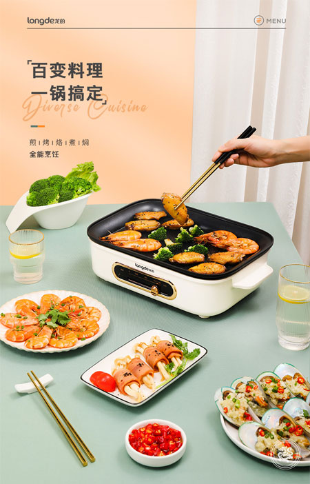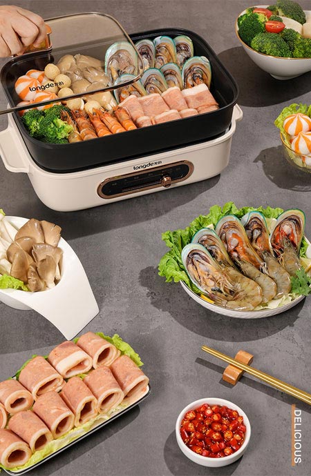 longde龍的多功能烹飪鍋顧名思義擁有多種烹飪功能,煎、炒、烤、煮,涮,都適用。飯吃好了,蔬肉的營(yíng)養(yǎng)補(bǔ)充到了,胃口好了,身體的新陳代謝能力就更好。餐桌美食不重樣,讓家中老人孩子不挑食。