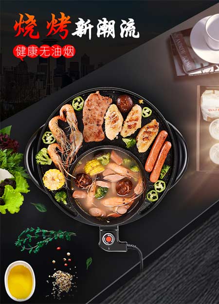 longde龍的涮烤一體電火鍋,是火鍋與燒烤的結(jié)合,滿足對(duì)火鍋烤肉的需求,無(wú)需二次動(dòng)手,一鍋可輕松解決。煮食不油煙,安全有保障,衣身不沾染氣味,保持整潔形象。是吃貨的選擇,滿足對(duì)美食的供應(yīng),烤、涮、煮、煎,一步到味。