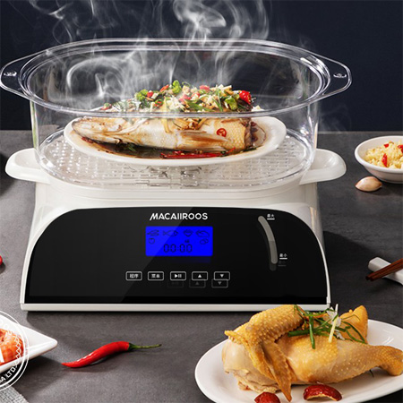 采用大功率金屬發(fā)熱盤,加熱面積大,受熱均勻,火力強(qiáng)力,快速升溫,減少等待時間。發(fā)熱盤迅速發(fā)熱,水蒸汽環(huán)流而上,使食材至下而上無死角均勻受熱,在我們洗漱的過程中,輕松蒸熟美味。高科技時代,電器給生活提供了很大的便利,同樣邁卡羅MACAIIROOS 可視化電蒸籠,也是相應(yīng)而來,可微電腦智能控制,蒸煮自動完成,
