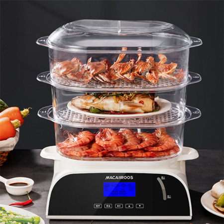 帶有三層12L容量,早、中、晚餐,都可一鍋蒸煮,透明頂蓋設(shè)計,烹飪過程一目了然,記錄食材熟透的每一個過程。選用食品級材質(zhì)打造,制作美食無異味,更健康。經(jīng)常做飯的人都知道,蒸鍋非常忌諱無水干燒,不僅會將蒸鍋損壞,還會影響食物的口感,需要我們花費(fèi)人工來監(jiān)察,費(fèi)時又費(fèi)事。而可視水量窗口設(shè)計,就能輕松避免干燒情況的發(fā)生,減少安全隱患。