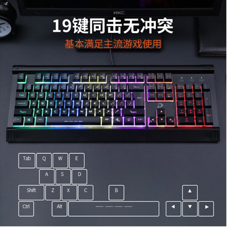 鍵盤(pán)的設(shè)計(jì)上,考慮了大多數(shù)人的操作習(xí)慣,選擇了常用的19鍵無(wú)沖突設(shè)計(jì)。在這19個(gè)按鍵里,用戶(hù)能同時(shí)按下而不沖突,基本滿(mǎn)足主流游戲使用,提升舒適體驗(yàn)。