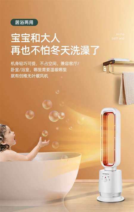 人性化設(shè)計(jì),安全防夾手,無(wú)葉出風(fēng),防止寶寶誤觸,伸入手指夾傷,提拿更安全。即開(kāi)即熱,播散溫暖無(wú)需過(guò)多等待,只需兩秒快速出熱,讓溫暖如影隨形。國(guó)慶的到來(lái),肯定是少不了邀上好友,帶上家人,去外地好好游玩一番,而秋天是晝夜溫差大的時(shí)節(jié),白天溫度適中,晚上就比較涼,給家里放上創(chuàng)維Skyworth無(wú)葉暖風(fēng)機(jī),玩累了回到家中,感受被溫暖包圍的幸福感。