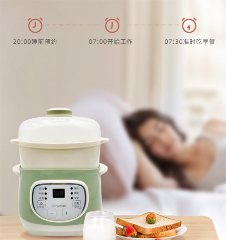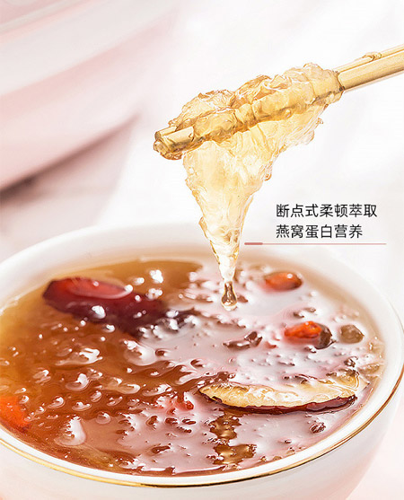 白瓷內(nèi)膽,蒸出食材營養(yǎng),加熱不化學(xué)反應(yīng),鎖溫效果明顯。與傳統(tǒng)的煲湯方式不同,它是隔水柔燉,讓蒸出的營養(yǎng)不流失。對美艷燕窩的制作上,也輕易實(shí)現(xiàn),短點(diǎn)式柔燉萃取,吃出水潤好膚色。24小時(shí)預(yù)約定時(shí),睡前就可預(yù)約,做早餐不用早起,睡醒就能吃,溫度剛剛好,不二次加熱。