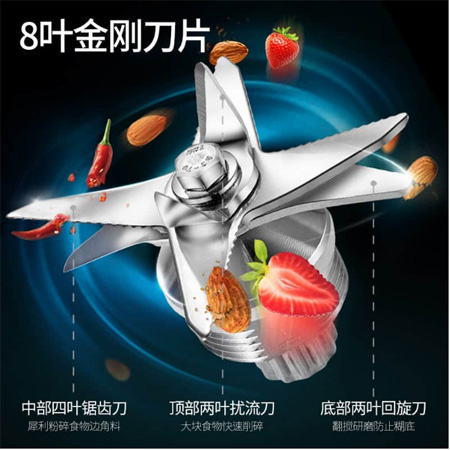 大功率電機(jī),澎湃動(dòng)力,每分鐘上萬(wàn)次,切割攪拌有效釋放食物深藏的營(yíng)養(yǎng),解放深層元素。雙刀頭標(biāo)配,精鋼多方位打磨,8葉多階角,精鋼破壁刀,上中下多方位回旋切割,撕裂膳食纖維。8mm加厚高硼硅玻璃杯,高強(qiáng)度耐震動(dòng),驟冷驟熱不破裂,使用壽命更長(zhǎng)。