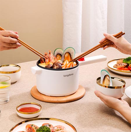 longde龍的多功能電煮鍋,是專屬你的美味鍋,煎炸烹煮,樣樣在行,做自己的日常營養(yǎng)師,每日三餐,輕松搞定。大功率配置,享受美食無需過多等待,大火600W,將爆炒飯菜更香。雙檔調(diào)節(jié),宿舍不跳閘,減少安全隱患。長手柄設(shè)計(jì),輕松拋炒不累手,提拿不費(fèi)勁。食品級不粘一體成型內(nèi)膽,無異味耐高溫不糊底,告別厚重油膩感。