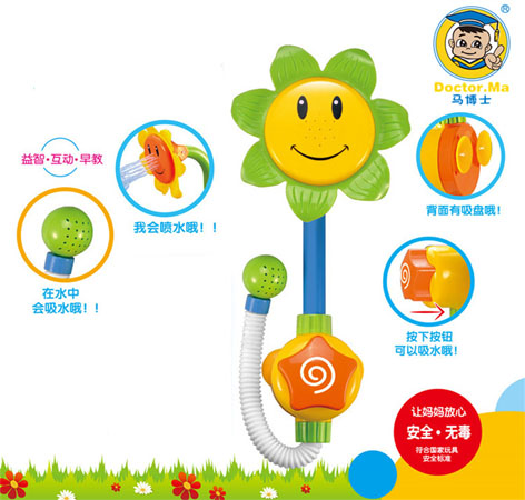 馬博士的這款噴水向日葵花灑。玩具采用環(huán)保塑料制作,光滑表面處理。產(chǎn)品堅(jiān)固耐用,安全無(wú)毒無(wú)味,通過國(guó)家強(qiáng)制性3C安全認(rèn)證,可放心給寶寶使用!產(chǎn)品外觀表面非常光滑,圓角處理,無(wú)尖角和毛邊。保障寶寶幼嫩皮膚不受傷害,媽媽可放心給寶寶使用。適用年齡在3-6歲,按五角星打壓一會(huì)的花朵上的噴頭便會(huì)噴出水出來(lái)吸引寶寶的注意,和寶寶親子互動(dòng),培養(yǎng)寶寶開朗的性格,為寶寶成長(zhǎng)創(chuàng)造快樂的家庭氛圍??蓯鄣南蛉湛煨蛯殞氁豢淳拖矚g,當(dāng)向日葵上面杯子倒?jié)M水時(shí),水會(huì)通過向日葵的臉型流出。讓寶寶更好的享受洗澡的樂趣。讓孩子愛上洗澡!