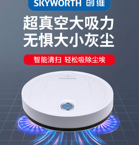 為了減輕家務(wù)煩惱,請(qǐng)務(wù)必安排上創(chuàng)維掃地機(jī)器人,它可以輕松打掃沙發(fā)、床底、桌角等不容易清理到的部位。弓字型路徑,覆蓋全屋更周到,有效提高清潔效率。升級(jí)至3種清潔模式,定點(diǎn)清掃,延邊清掃,不放過(guò)任何一個(gè)死角。強(qiáng)吸大顆粒,輕松吸附煙灰,餅干碎,毛發(fā)等家庭常見(jiàn)垃圾,還房屋一個(gè)靚麗整潔。
